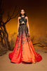A breathtaking gown that captures the essence of fire and renewal, the Ember Bloom radiates strength and allure. Crafted in luminous satin with a hand-painted gradient that flows from deep black to molten orange and gold, the gown evokes the beauty of nature in motion. The crisscross halter bodice reveals a subtle cutout at the waist, cinched with a bold velvet belt that accentuates the silhouette.