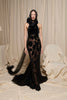Fabric: Black velvet, sheer tulle with hand-embroidered appliqués