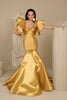 Paired with its sculpted cape-style bolero, the gown gains an even more commanding presence. The exaggerated folded shoulders form a modern armor of beauty, framing the torso and giving power to the wearer’s stature.