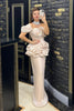 Sculptural and refined, this Ornelys designed to impress. The one-shoulder silhouette features a dramatic puff sleeve and a structured bodice with artful draping. Crafted from finely pleated fabric, the skirt falls gracefully to the floor, offering movement and elegance in every step.