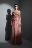 Beneath, layers of soft chiffon reveal an artistic, fluid patterns that drift across the corset and skirt, giving the dress a sense of movement even in stillness. The waist is finished with a slim tonal belt, adding subtle structure.